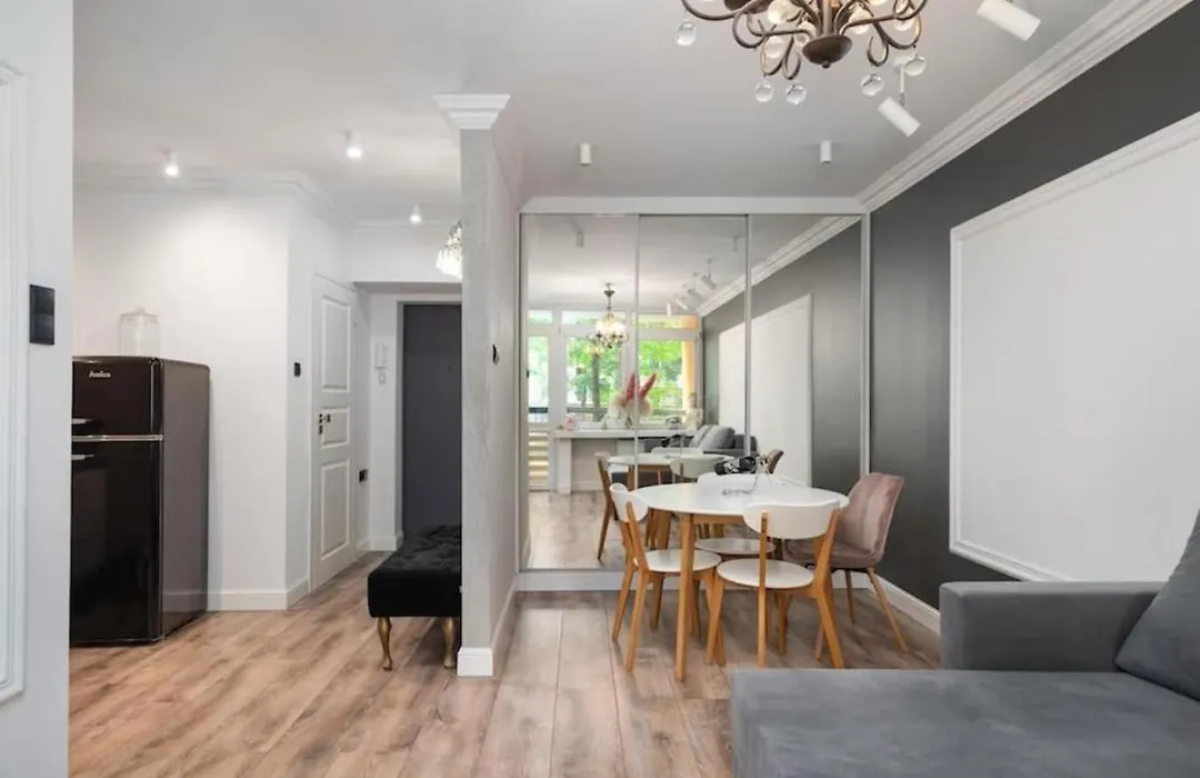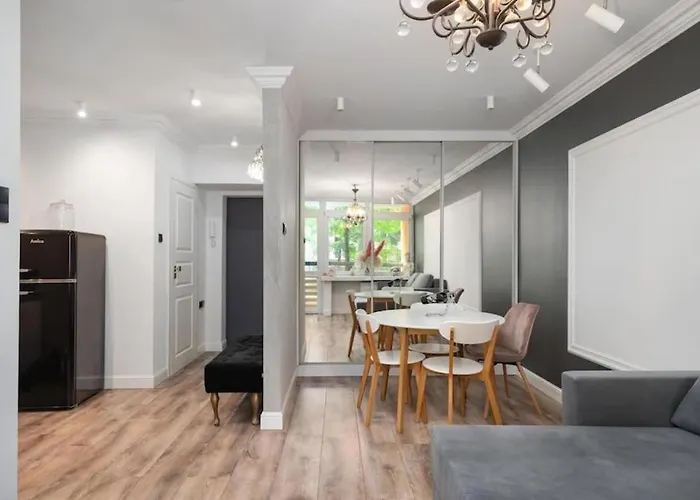 Apartament Urban Chic - Modern&Stylish, Aleja Solidarności Warszawa o powierzchni 40 m² oferuje widoki na miasto i znajduje się 15 min piechotą od Multimedialnego Parku Fontann w Warszawie. Wi-Fi dostępne dla gości biznesowych lub rekreacyjnych.